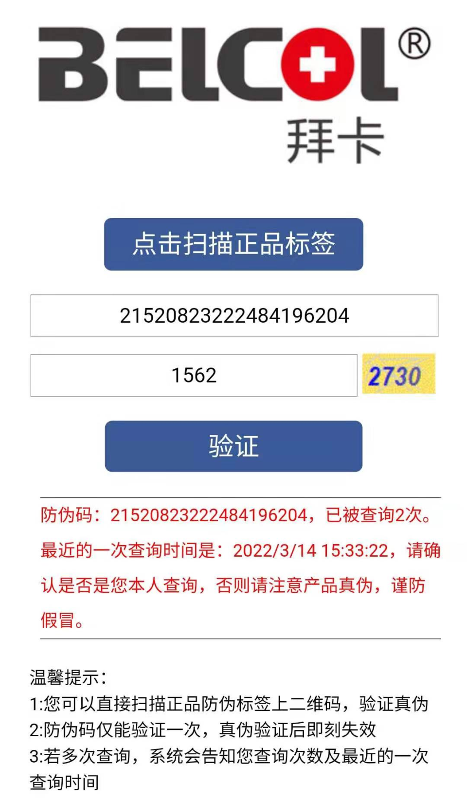 每年的“3.15打假日”(国际消费者权益保护日) 卡卡都会教大家如何辨别拜卡“真假” 说到“假”,你可能会想到 大个核桃、雷碧、白事可乐、旺子... 这些用着和正版几乎一样的包装 换个名字降低价格误导消费者,这叫做 盗版!抄袭! 全都是“假” 说到盗版、抄袭这一话题,卡卡最近也遇到了同样的困扰,有不少粉丝咨询卡卡: “拜卡是不是换包装了?” “为什么用完之后看不到效果?” “怎么查询产品真伪?” …… 经过跟粉丝的进一步沟通及市场调研发现,市面上出现了与拜卡产品包装极其类似但实质完全不同的产品,误导了大家! 拜维它VS仿版 生产标准 拜维它:兽用非处方药,GMP工厂生产,原料、浓度有保证 仿版:非兽药,包装标注为企标 拜维它VS仿版 商品名 拜维它:包装上有注明商品名“拜维它”,且已注册商标 仿版:没有商品名 拜维它VS仿版 气味 拜维它:打开后可闻到明显的VB气味 仿版:与VB的气味有明显区别 拜维它VS仿版 滴管刻度 拜维它:滴管刻度明显,清晰,为红色刻度线 仿版:较粗的黑色等颜色的刻度线 拜维它VS仿版 封套 拜维它:收到的包装上有央视封套 仿版:无封套 下面,卡卡整理了辨别产品真假的几种方法,供铲屎官们参考。 01 检查购买店铺是否有拜卡官方授权书 拜卡每年都会定期对所有合作伙伴发放授权书及做好合作备案。 查验授权书时,铲屎官们也要辨别授权证书的真假及授权到期时间。 若店家无法出具授权书,铲屎官们也可拨打拜卡官方电话查询备案情况(4000819838)。 02 扫码查询真伪 在拜卡公众号子菜单栏中的“防伪查询”中点击“真伪查询”,扫描包装上的二维码,并输入验证码后即可查询真伪,防伪码只能验证一次。 若第一次查询时即显示防伪码已经过多次查询,请立即咨询购买商家或联系卡卡,确定产品的真假。 第一次查询VS多次查询结果显示 03 对比产品包装、气味 若铲屎官们购买的拜卡产品跟之前购买的产品相比,浓度、颜色、味道、适口性等方面存在异常,也可咨询卡卡,验证产品的真伪。 原料、配方、生产工艺、出厂检测、售后服务等等一系列产品核心是不易被替代模仿的,为了毛孩子的身体健康,还是建议大家选择已经被无数铲屎官检验过质量的正品。 将“正规、安全、有效”作为品牌理念的拜卡生产销售的每一款产品都经过了严格的质量检测,力争让养宠人用的安心,让毛孩子的健康得到守护! |